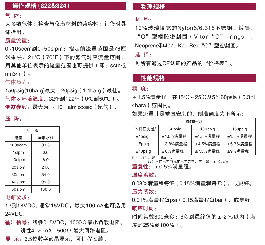 流量從0~10sccm到0~50slpm范圍內,Top-Trak適合任何潔凈氣體的流量測量場合。材質為316不銹鋼,鎳金屬,尼龍塑料,具有良好的抗腐蝕性。